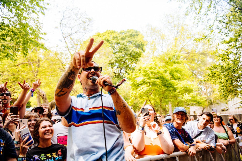 Even so, I wasn’t about to let this one unfortunate situation ruin the rest of my weekend. As soon as I heard Amyl and The Sniffers come onto the Criminal Records stage, I ran into the center of the pit and moshed with every ounce of my being. I don’t think there could have been a more perfect set to take place directly after having my phone stolen. I let out all of my frustrations by going as hard as I possibly could to every song they played. I even crowd surfed during “Knifey.” I’ve been a huge fan of theirs since first hearing their latest record Comfort to Me through WUSC’s rotation, and their performance was everything I could have asked for and more. It was hard to understand anything the lead vocalist said between songs because of her Australian accent, but she still managed to murder every second of the performance. She was shouting every lyric with her entire soul, and she even stage-dived into the crowd at one point. This was by far the most intense mosh pit of the weekend, and it was one of the best punk shows I have ever seen.